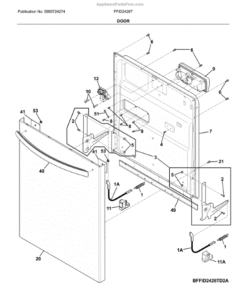 Parts for Frigidaire FFID2426TD5A: Door Parts