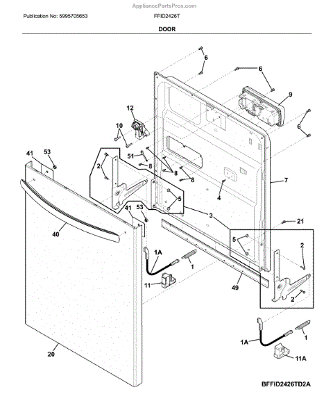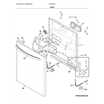 The Inner Door Panel is an OEM part for Frigidaire dishwashers. It is an internal door component located inside the outer door panel. The inner door panel is responsible for providing structure and rigidity to the interior of the dishwasher door.