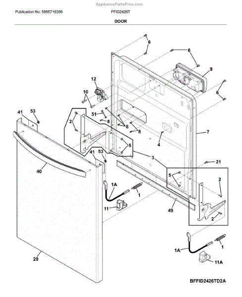 The Inner Door Panel is an OEM part for Frigidaire dishwashers. It is an internal door component located inside the outer door panel. The inner door panel is responsible for providing structure and rigidity to the interior of the dishwasher door.