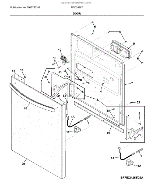 The Inner Door Panel is an OEM part for Frigidaire dishwashers. It is an internal door component located inside the outer door panel. The inner door panel is responsible for providing structure and rigidity to the interior of the dishwasher door.