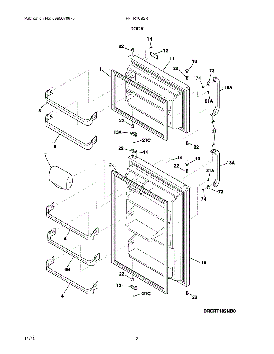 Replace a cracked, dented, or bent refrigerator outer door panel to restore proper sealing and appearance. Confirm fit with your model number.