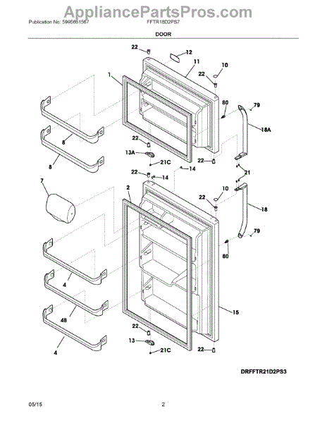 This handle set replaces a damaged or worn refrigerator door handle so you can open and close the door securely and restore the appliance's appearance. Designed as a direct-fit service part for compatible Frigidaire refrigerators. What it does:
