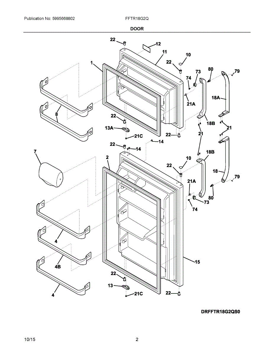 Replaces worn fresh food door seal to restore airtight closure, prevent condensation, and reduce energy loss. Replace when torn, warped, or gapped.