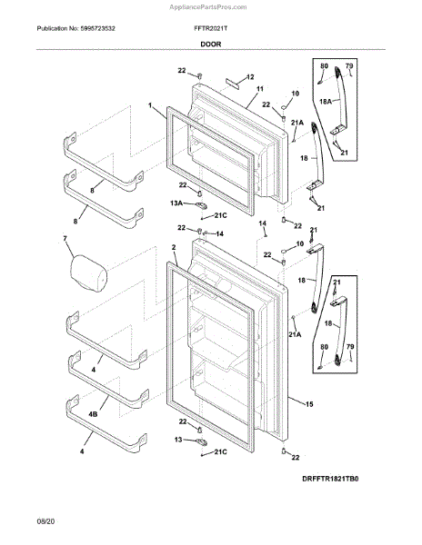 Parts for Frigidaire FFTR2021TB6: Door Parts