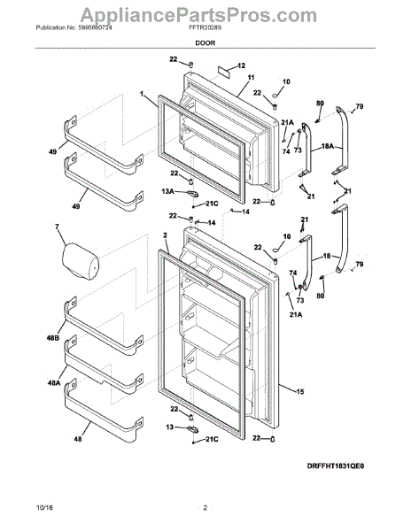 This full refrigerator door replaces a damaged or worn outer door to restore the appliance's appearance and proper access to the fresh-food compartment. It provides a solid closure surface and helps maintain normal cooling performance when properly installed. What it does: