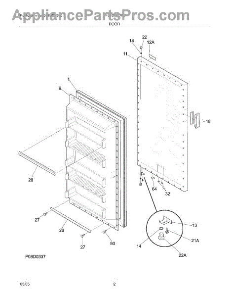 The Door Gasket is an OEM replacement part for Frigidaire refrigerators. It forms a thin, flexible seal around the refrigerator door to help maintain cooling and freshness inside. The gasket relies on a durable, compression-fit design to withstand repeated openings and closings while preventing air and temperature leaks. Causes of a bad gasket include deterioration over time due to exposure to temperature changes or cracking/breaking down of the sealing material. Symptoms of a faulty door gasket include: