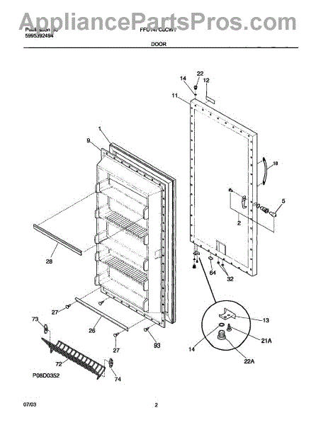 The Door Seal Gasket is an OEM replacement part for Frigidaire refrigerators. This essential component creates an airtight seal around the refrigerator door, preventing cold air from escaping and warm air from entering the appliance.