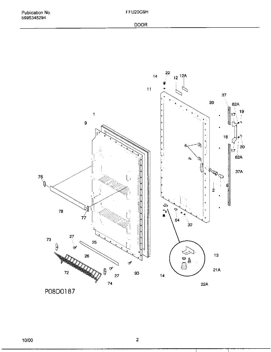 Parts for Frigidaire FFU20G9HW1: 02 - Door Parts