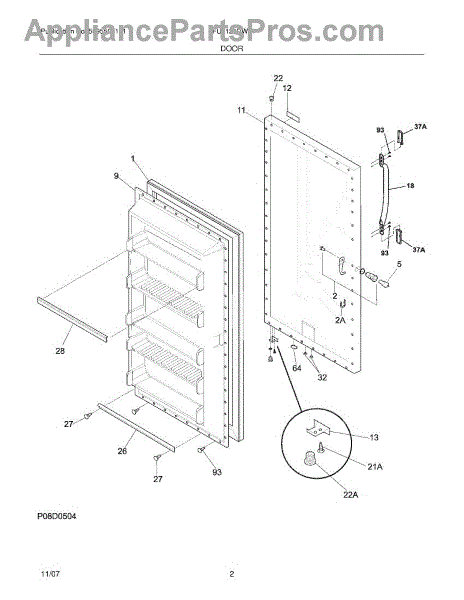 Parts for Frigidaire FFU2124DW11: 03 - Door Parts