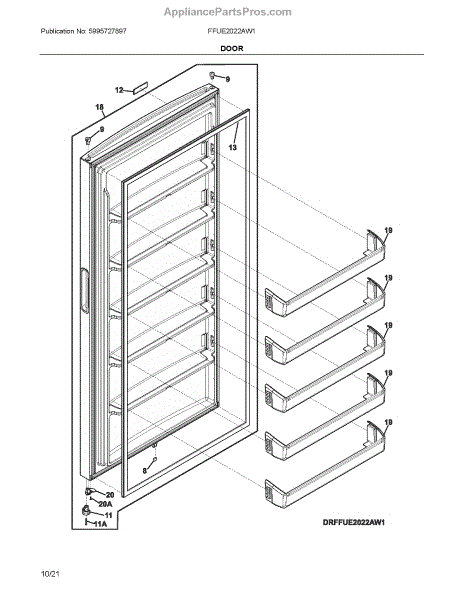 Parts for Frigidaire FFUE2022AW1: Door Parts