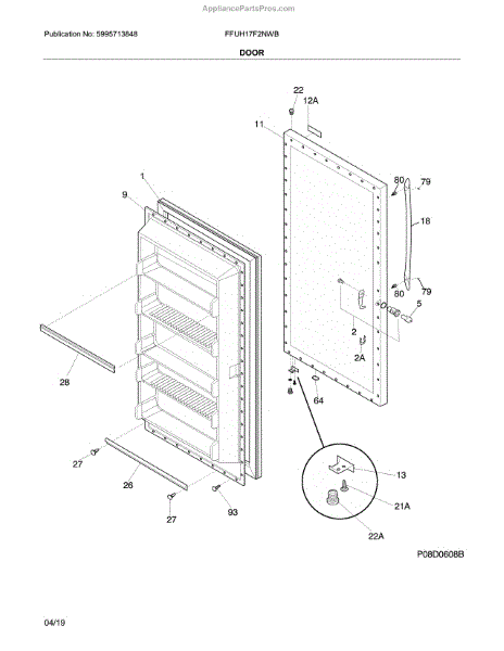 Parts for Frigidaire FFUH17F2NWB: Door Parts