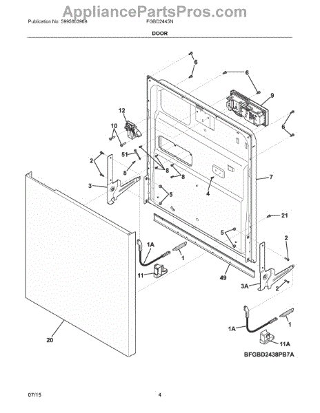 The Inner Door Panel is an OEM part for Frigidaire dishwashers. It is an internal door component located inside the outer door panel. The inner door panel is responsible for providing structure and rigidity to the interior of the dishwasher door.