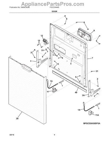 Parts for Frigidaire FGCD2444SB0A: 03 - Door Parts