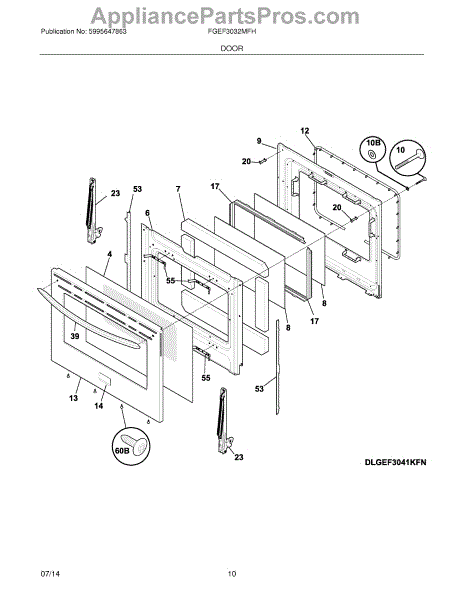 Replace a broken or worn oven door hinge to restore proper door alignment and closure. Connects door to frame and controls movement. Essential when door sags.