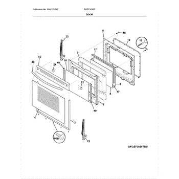 The Inner Door Glass is an OEM part for Frigidaire wall ovens and ranges. It provides a clear view of the oven cavity and cooked foods from the outside of the door.