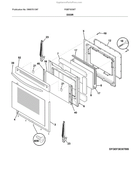 The Handle is an OEM replacement part for Frigidaire ranges. It is the component located on the front of the oven that allows for opening and closing the oven door. Causes of a bad handle stem primarily from wear and tear due to frequent use over many years. Exposure to heat cycling may also degrade adhesives or secondary components that secure the handle. Symptoms of a faulty handle include: