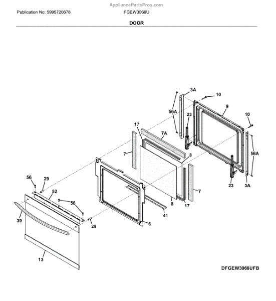 Parts for Frigidaire FGEW3066UDB: Door Parts
