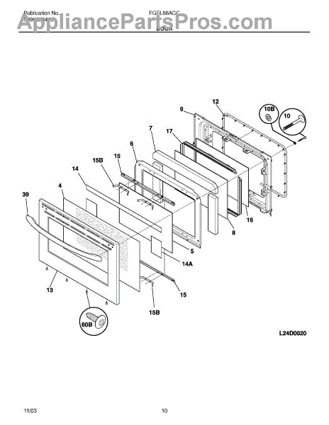 Parts for Frigidaire FGFL88ACC: 11 - Door Parts