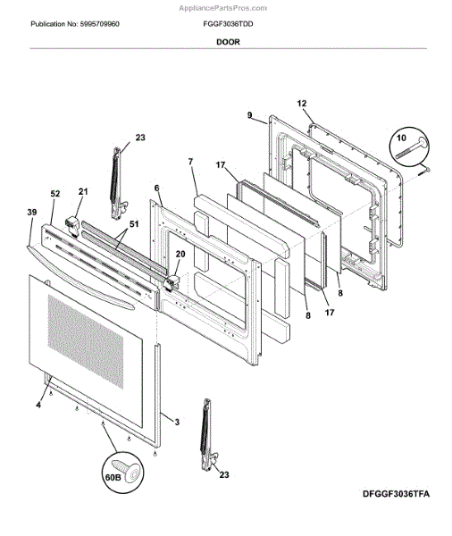Parts for Frigidaire FGGF3036TDD: Door Parts