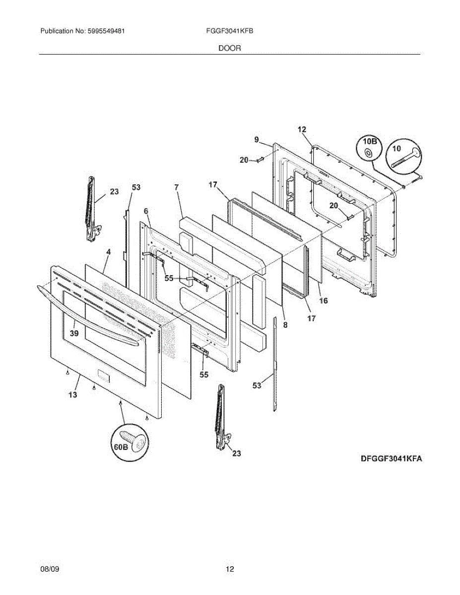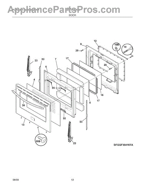 Parts for Frigidaire FGGF3041KFB: 11 - Door Parts