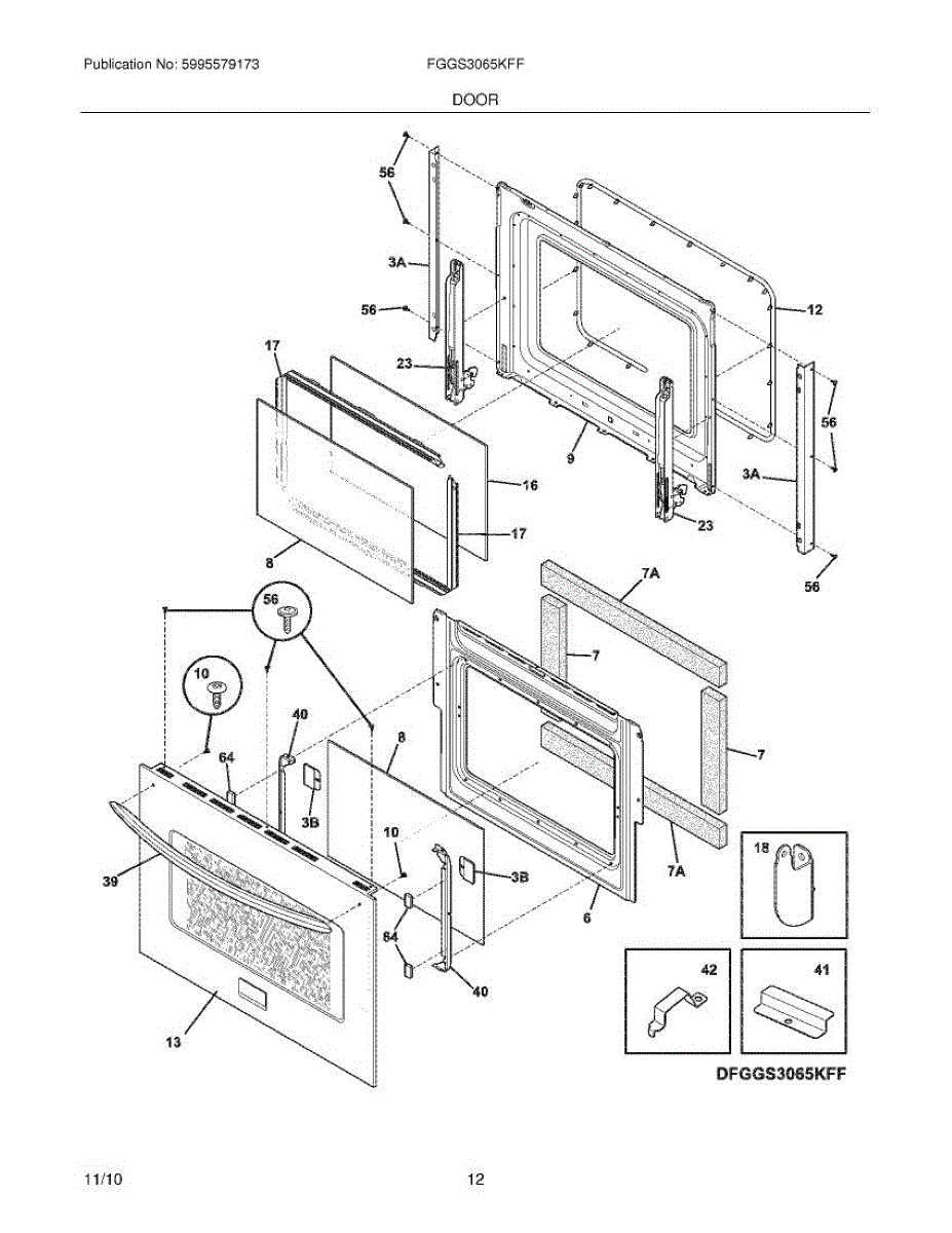 Parts for Frigidaire FGGS3065KFF: 11 - Door Parts
