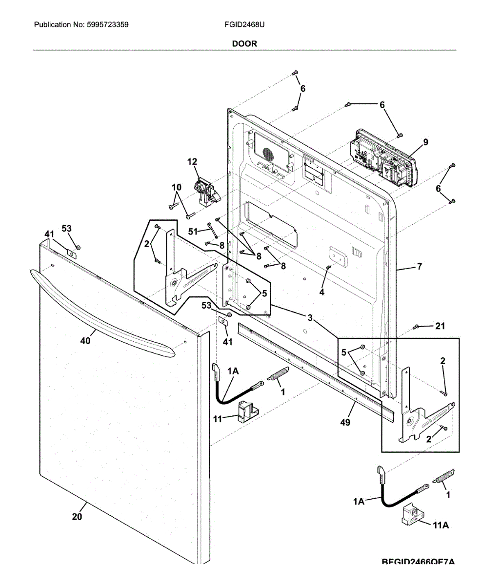 The Inner Door Panel is an OEM part for Frigidaire dishwashers. It is an internal door component located inside the outer door panel. The inner door panel is responsible for providing structure and rigidity to the interior of the dishwasher door.
