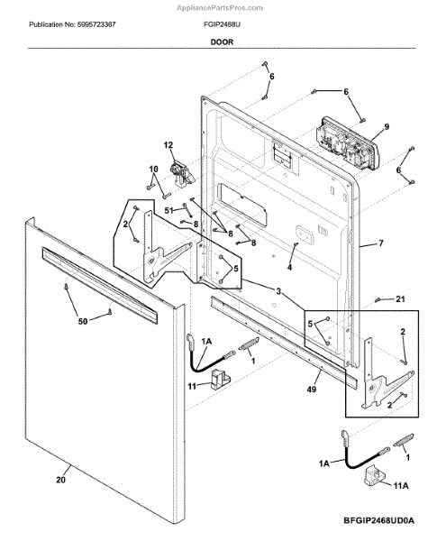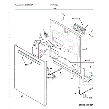 The Inner Door Panel is an OEM part for Frigidaire dishwashers. It is an internal door component located inside the outer door panel. The inner door panel is responsible for providing structure and rigidity to the interior of the dishwasher door.