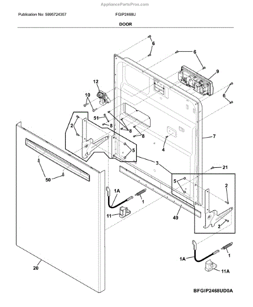 The Inner Door Panel is an OEM part for Frigidaire dishwashers. It is an internal door component located inside the outer door panel. The inner door panel is responsible for providing structure and rigidity to the interior of the dishwasher door.