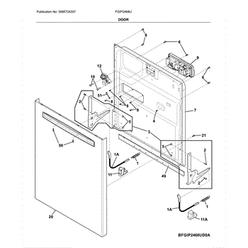 The Inner Door Panel is an OEM part for Frigidaire dishwashers. It is an internal door component located inside the outer door panel. The inner door panel is responsible for providing structure and rigidity to the interior of the dishwasher door.