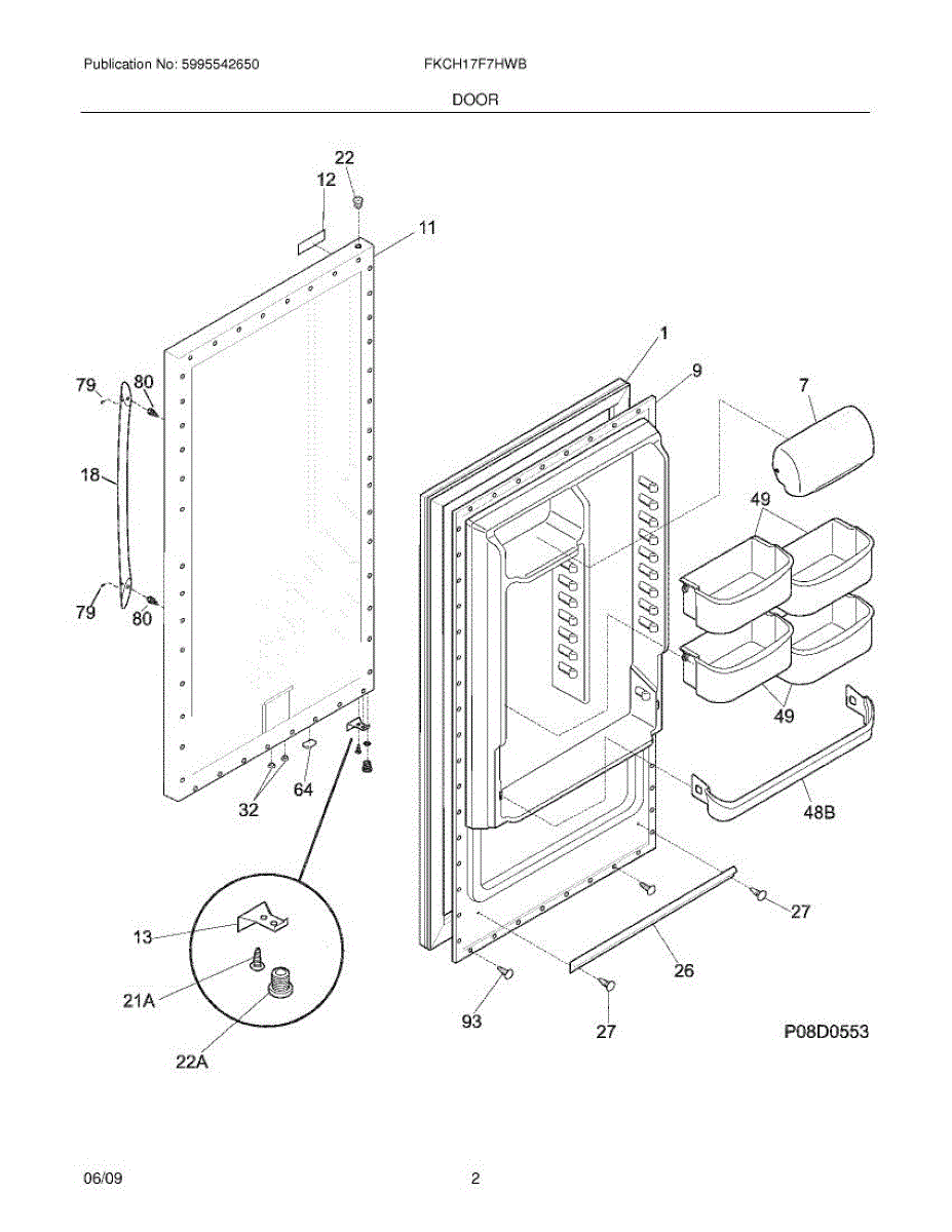 This replacement inner door panel restores the interior surface of the door. It supports door bins/shelves and provides a stable surface for the door gasket to seal, helping keep cold air in and items secure.
