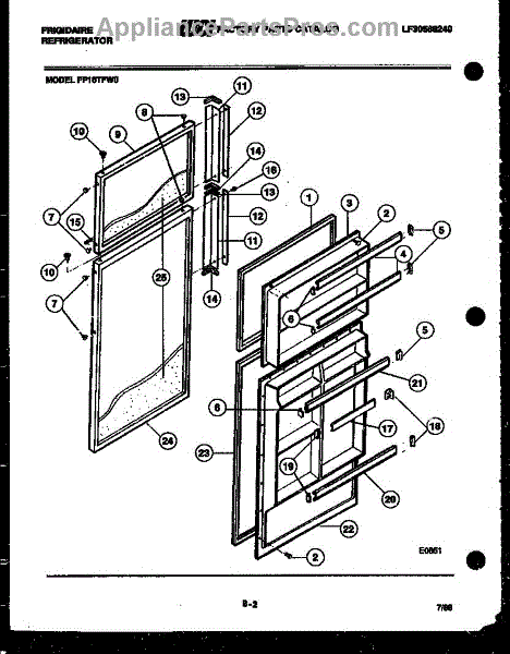 Parts for Frigidaire FP18TFW0: 02 - Door Parts