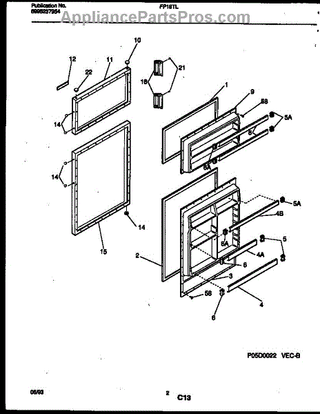 Parts for Frigidaire FP18TLW7: 02 - Door Parts