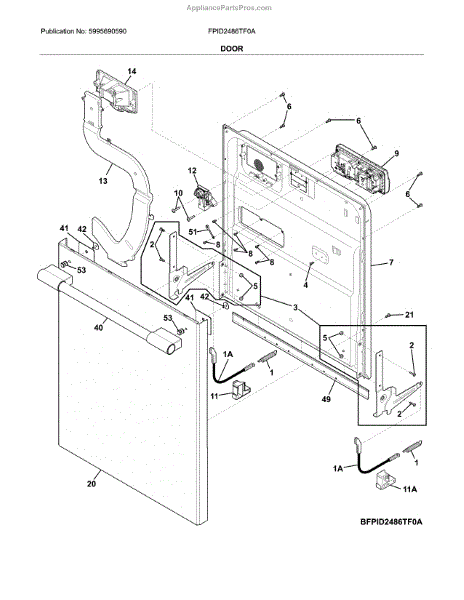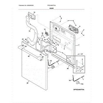 The Door Cable is an OEM part for Frigidaire dishwashers. It is a component that connects the dishwasher door to the frame, controlling movement when accessing the tub interior.