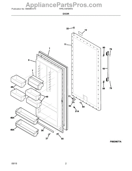 The Door Bin is an OEM replacement part for Frigidaire refrigerators. It is an internal door that controls access to the bin storage compartment. This bin area provides additional shelving and can be used to neatly organize larger refrigerated items. This shelf measures approximately 14.25 x 6 inches. Causes of a bad door bin can include damage to the hinges from frequent opening and closing or impact from heavy items, issues with the door latch or magnets not securely holding the door in closed position. Symptoms of a bad bin include: