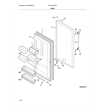 The Door Shelf Bin is an OEM part for Frigidaire refrigerators. It provides storage for commonly used items along the inside of the refrigerator door.