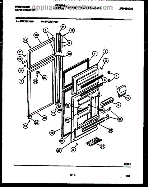 Parts for Frigidaire FPZ21TFF1: 02 - Door Parts