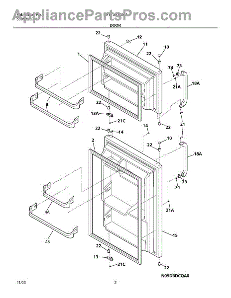 The Door Handle is an OEM part compatible with Frigidaire refrigerators. This component serves as the primary means of opening and closing the refrigerator door, offering both functionality and aesthetic appeal. This handle measures approximately 17 x 1". This white handle comes with block 218396700
