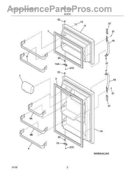 The Door Shelf Bar is an OEM part for Frigidaire refrigerators. This bar attaches to the door, providing a secure front barrier for door shelves to help hold items like bottles, jars, and condiments in place. It enhances the storage capacity and organization of the refrigerator door, ensuring that items do not fall out when the door is opened or closed.