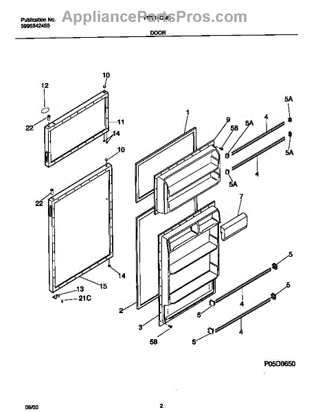 The Door Shelf Support is an OEM part for Frigidaire refrigerators, designed to hold and support the shelves on the inside of the refrigerator door. This part ensures that door shelves are securely mounted, providing stable storage for bottles, condiments, and other items.