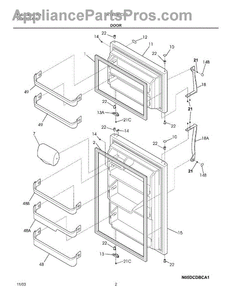 The Door Shelf Bin is an OEM replacement part for Frigidaire refrigerators. It is designed to fit on the refrigerator door, providing convenient storage space for condiments, bottles, and other small items. This shelf bin helps to keep the refrigerator organized, making it easier to find and reach items stored in the door.