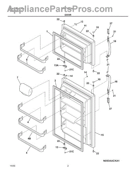 The Refrigerator Door Gasket is an OEM part for Frigidaire refrigerators, designed to seal the door of the refrigerator compartment, ensuring an airtight closure. This door gasket plays a crucial role in maintaining the efficiency of the refrigerator by preventing cold air from escaping and warm air from entering. Common causes for a Refrigerator Door Gasket to fail include normal wear and tear from opening and closing the door, damage from cleaning or misuse, and aging of the material, which can lead to hardening and loss of elasticity. Symptoms of a bad Refrigerator Door Gasket include:
