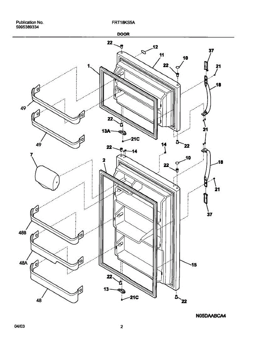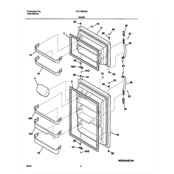 Complete freezer door panel assembly for top-mount refrigerators. Restores appearance when original is cracked, dented, or discolored. Bisque finish.