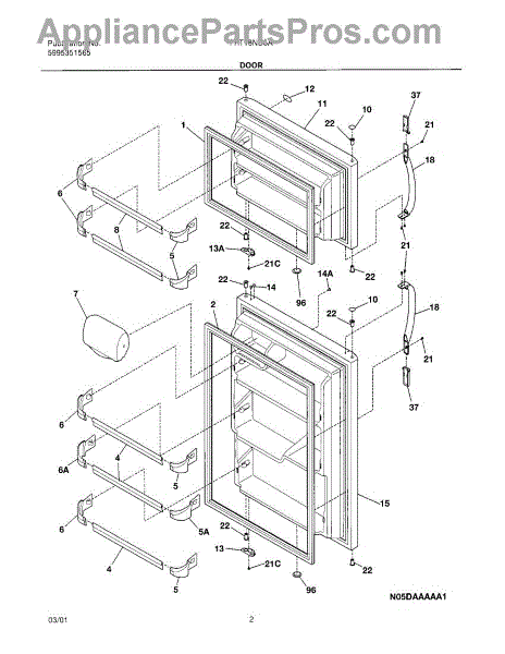 The Refrigerator Door Gasket is an OEM part for Frigidaire refrigerators, designed to seal the door of the refrigerator compartment, ensuring an airtight closure. This door gasket plays a crucial role in maintaining the efficiency of the refrigerator by preventing cold air from escaping and warm air from entering. Common causes for a Refrigerator Door Gasket to fail include normal wear and tear from opening and closing the door, damage from cleaning or misuse, and aging of the material, which can lead to hardening and loss of elasticity. Symptoms of a bad Refrigerator Door Gasket include: