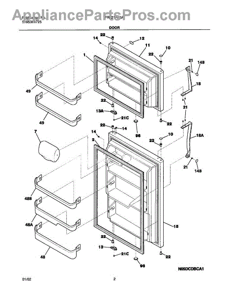 Refrigerator door hinge bearing provides smooth pivot action for proper door operation. Replace if door sags, sticks, or pops open. Confirm fit with your model number.