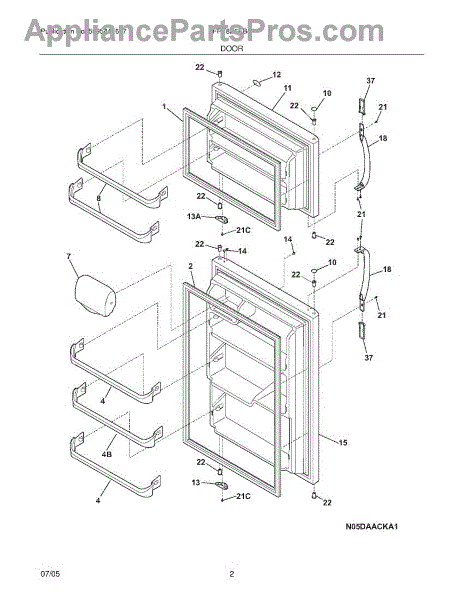 Outer door panel for refrigerator freezer compartment. Replaces cracked, dented, or damaged exterior door surface. Restores appearance and structure.
