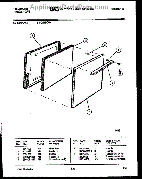 Parts for Frigidaire G24PCL4: 03 - Door Parts