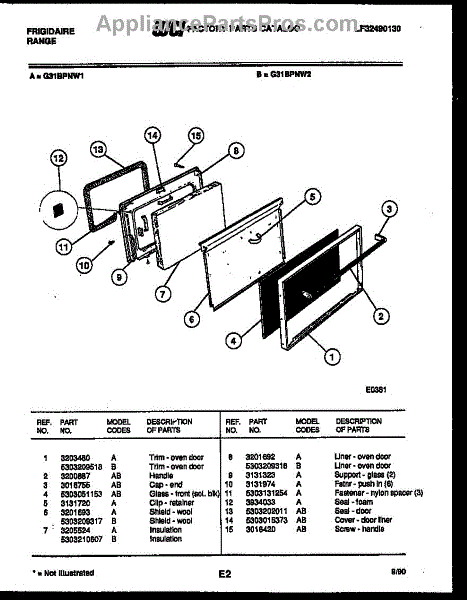 Parts for Frigidaire G31BPNW1: 05 - Door Parts