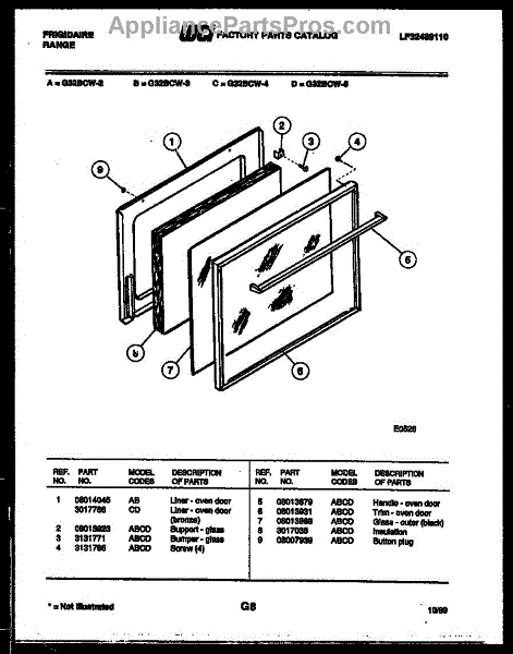 Parts for Frigidaire G32BCL3: 04 - Door Parts