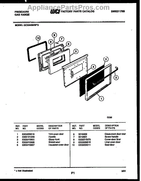 Parts for Frigidaire GCG34BNW3: 05 - Door Parts