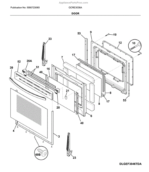 Parts for Frigidaire GCRE3038AFC: Door Parts